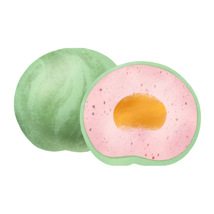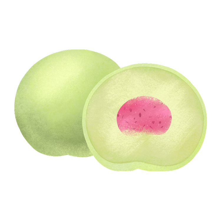 Состав — клейкая рисовая мука без глютена, творожный сыр, сыр маскарпоне, сливки пастеризованные животные 33%, масло растительное, пектин, пюре дыни, концентрат арбуза, семена чиа, сахар, кукурузный крахмал, вода питьевая, пищевой краситель.