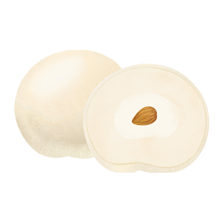 крем-чиз из маскарпоне, и кокосовой пасты, в центре цельный миндаль утоплен в нежной кокосовой мякоти