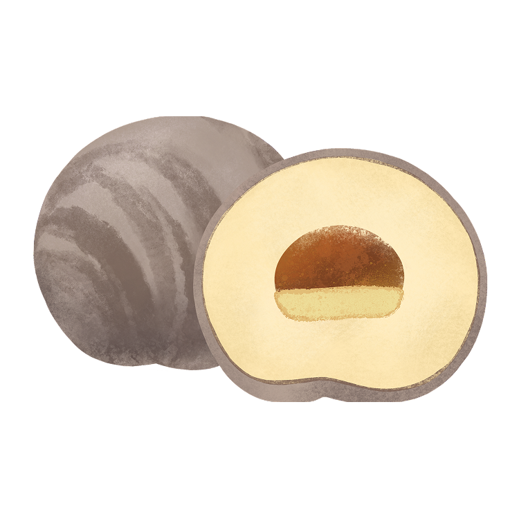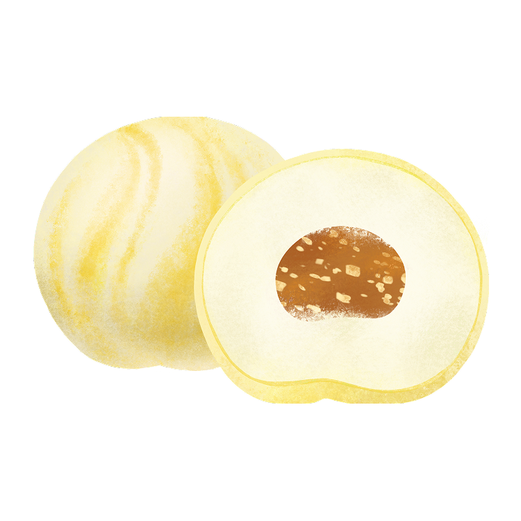 Состав — клейкая рисовая мука без глютена, творожный сыр, сыр маскарпоне, сливки, молочный шоколад, пастеризованные животные 33%, масло растительное, пектин, фундучная ореховая паста, сахар, кукурузный крахмал, вода питьевая, пищевой краситель.